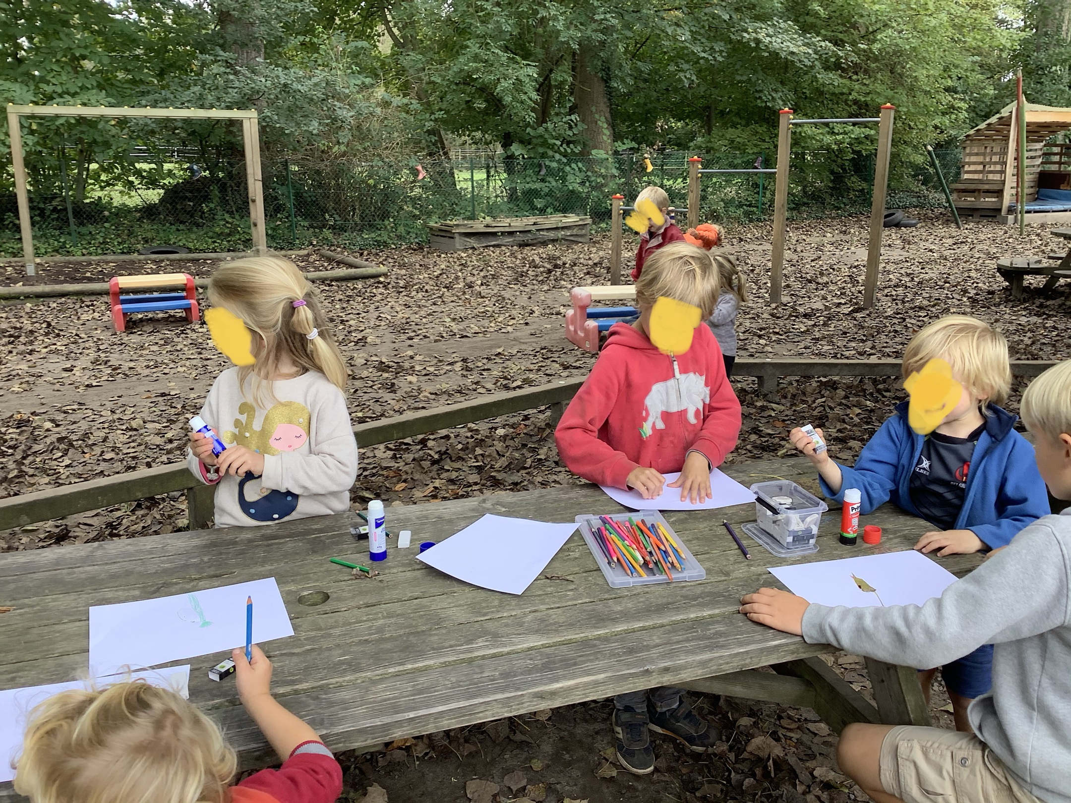 Lancé depuis bientôt trois ans, le projet » tous dehors » s’ancre petit à petit dans les habitudes.Et pour notre plus grand bonheur, les P1-P2 se joignent de temps en temps aux maternelles pour partager de nouvelles aventures .Ce vendredi 01 octobre, ateliers autour des feuilles récoltées précédemment .